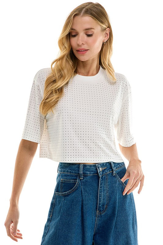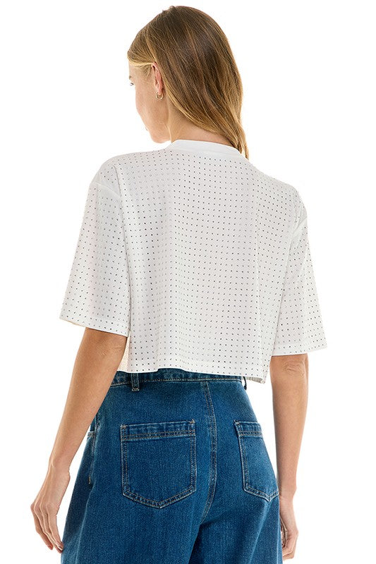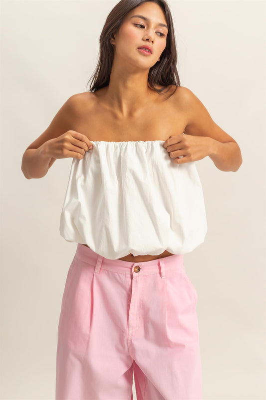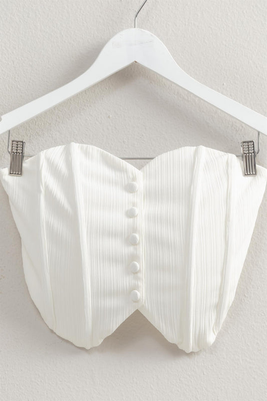 Foiled Crepe Twisted Front Detailed Strapless Top