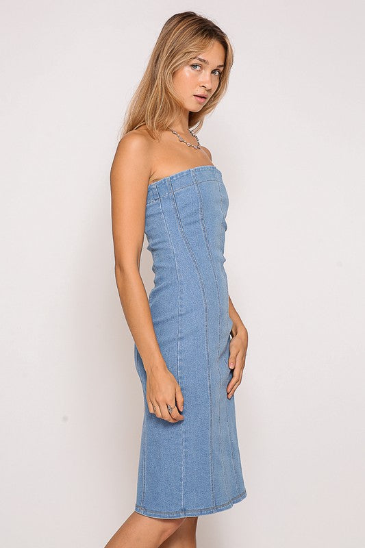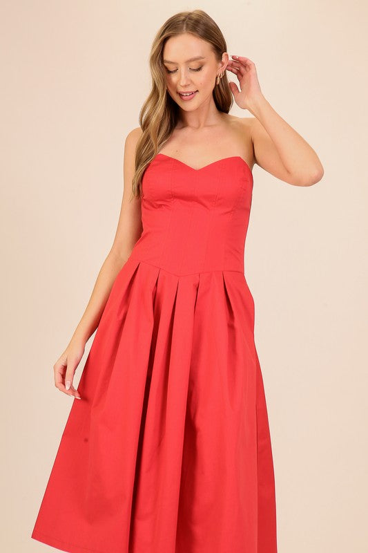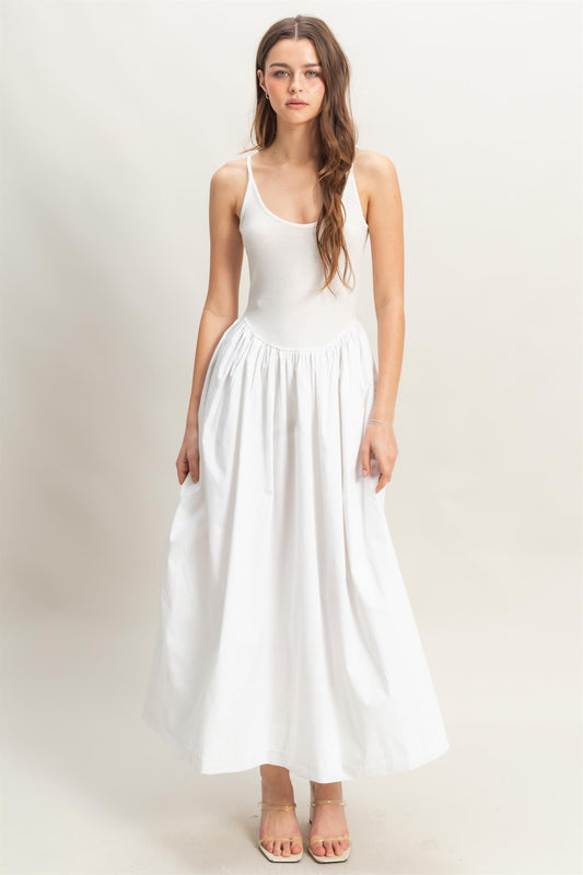 Faux Suede Leather Trim Sleeveless Midi Dress