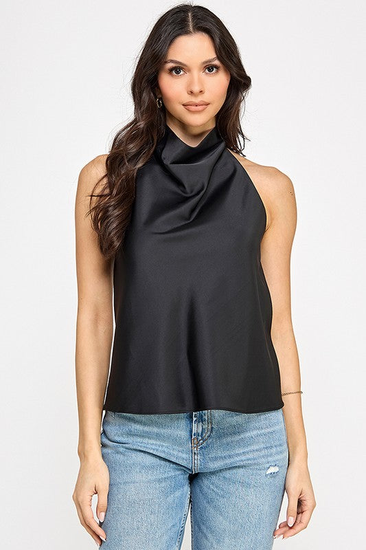 2pc set- silver hardware halter bodysuit & maxi skirt