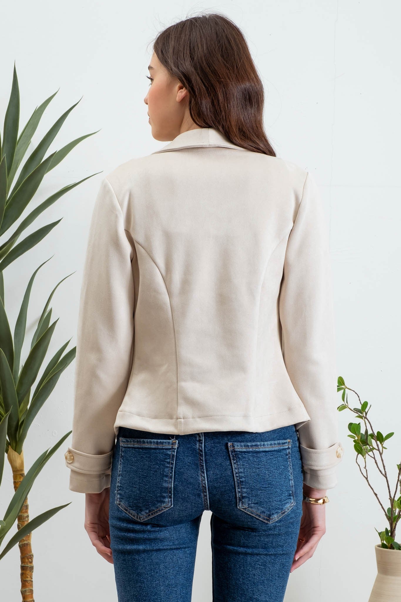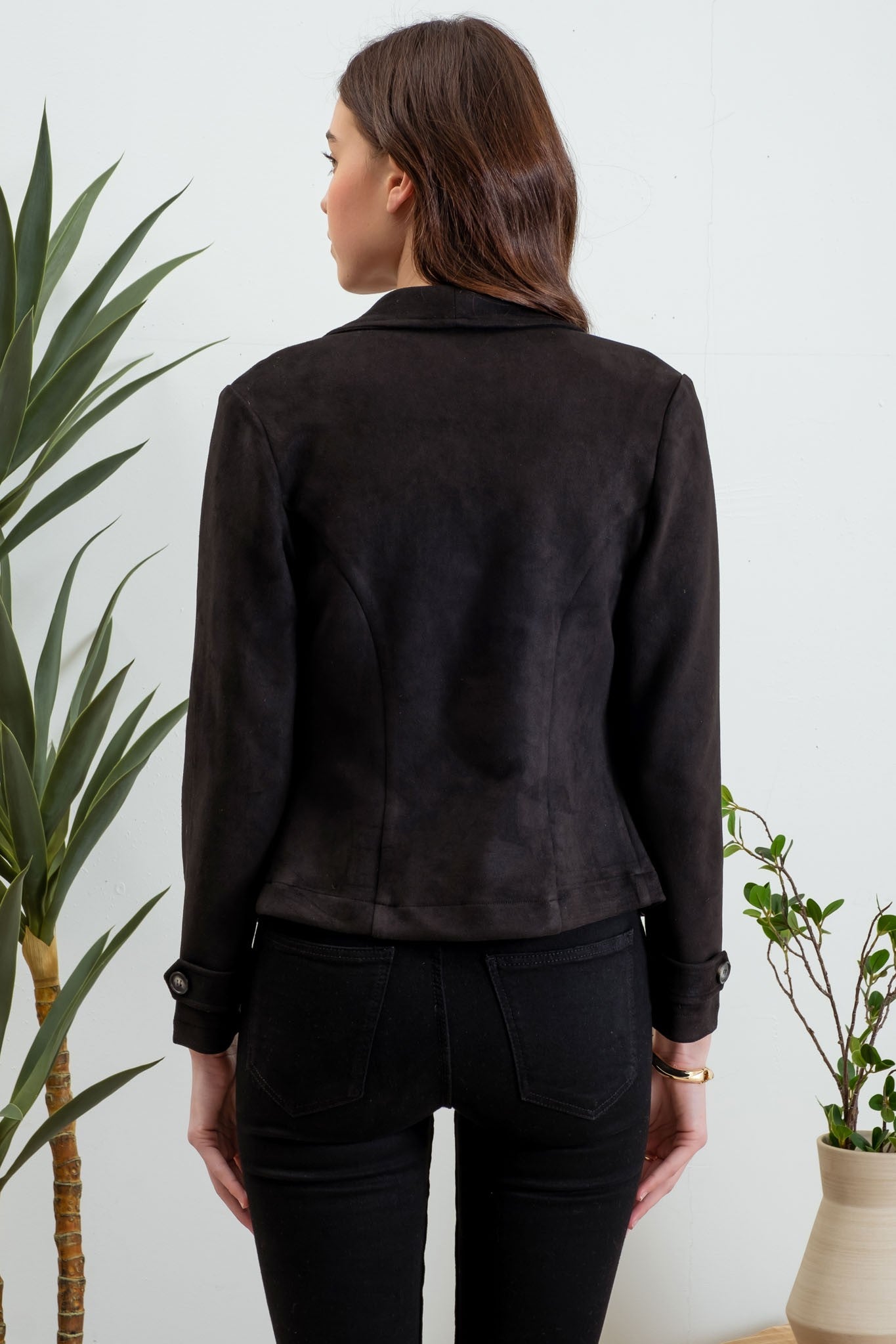 COLLARED WIDE FLAP COLLAR ZIPPER FRONT LONG SLEEVE TAB SLEEVE DETAIL FAUX SUEDE MOTO JACKET OUTERWEAR SOLID NOT LINED