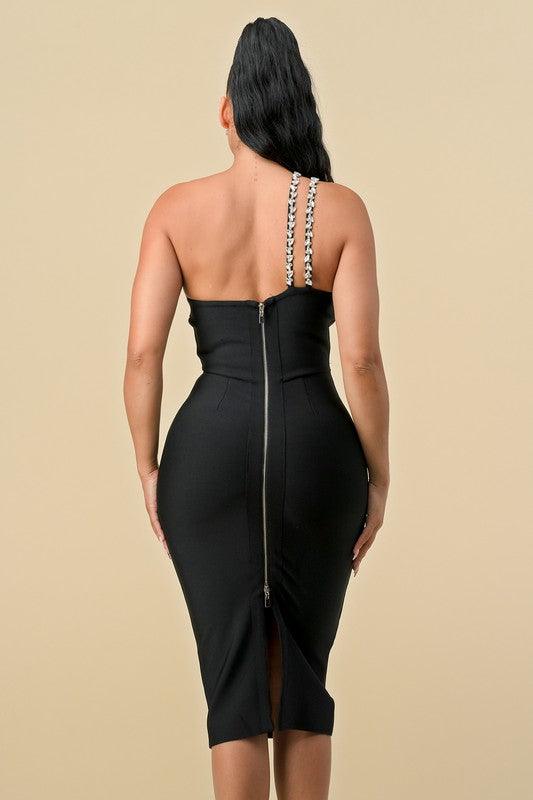 SLEEVELESS SIDE LACE DETAIL BANDAGE DRESS
