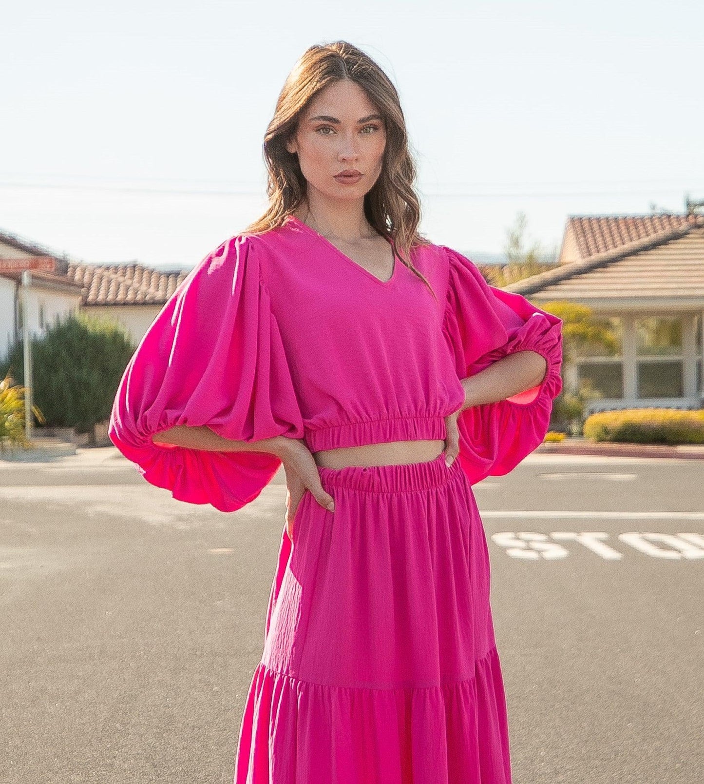 Plus Size, Solid airflow, v neck, 3/4 drape sleeve, cropped top with elastic band. Model is 5'9' wearing a size small