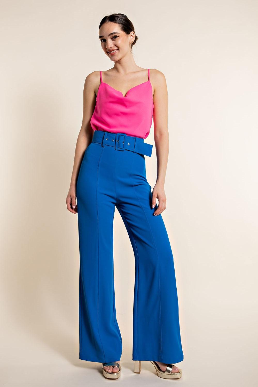 Belted High Waist Wide Leg Pants