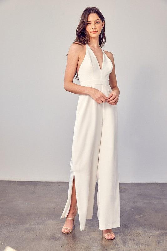 DEEP V-NECK WIDE LEG JUMPSUIT