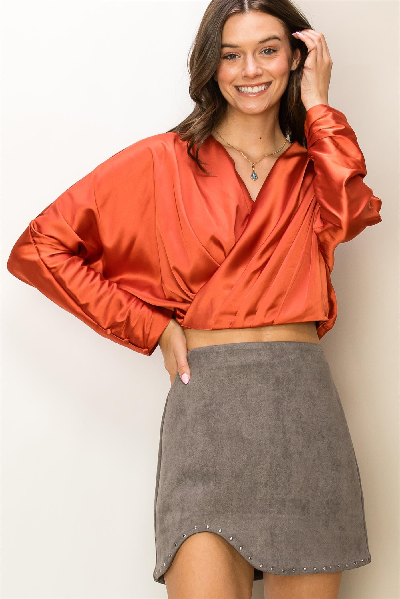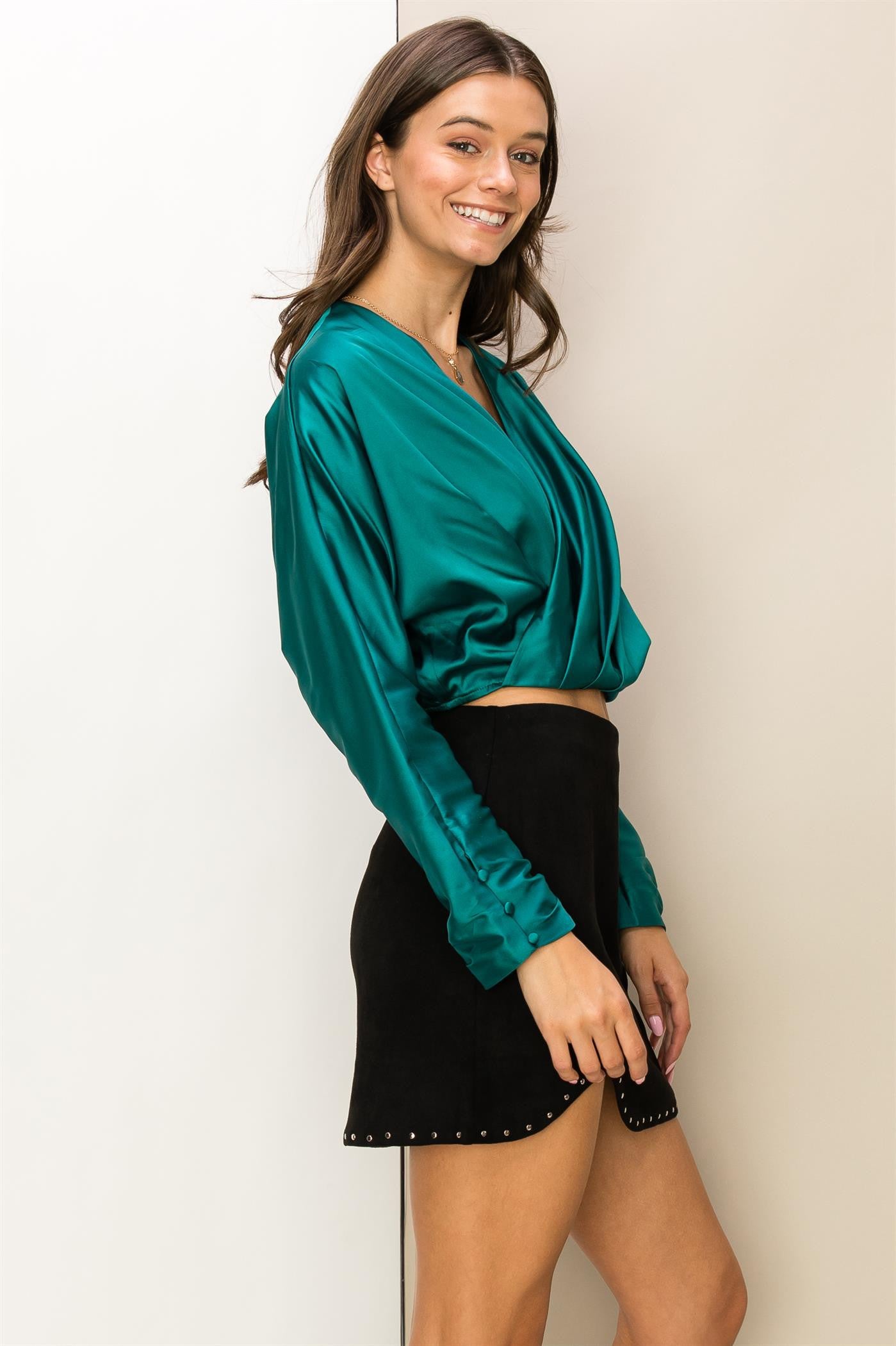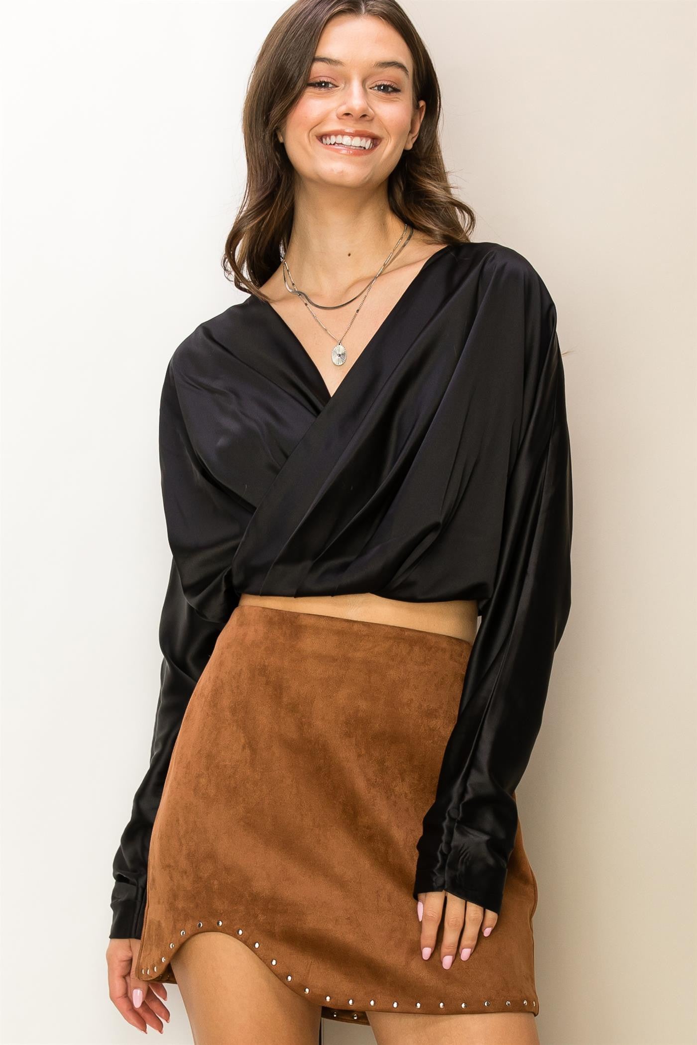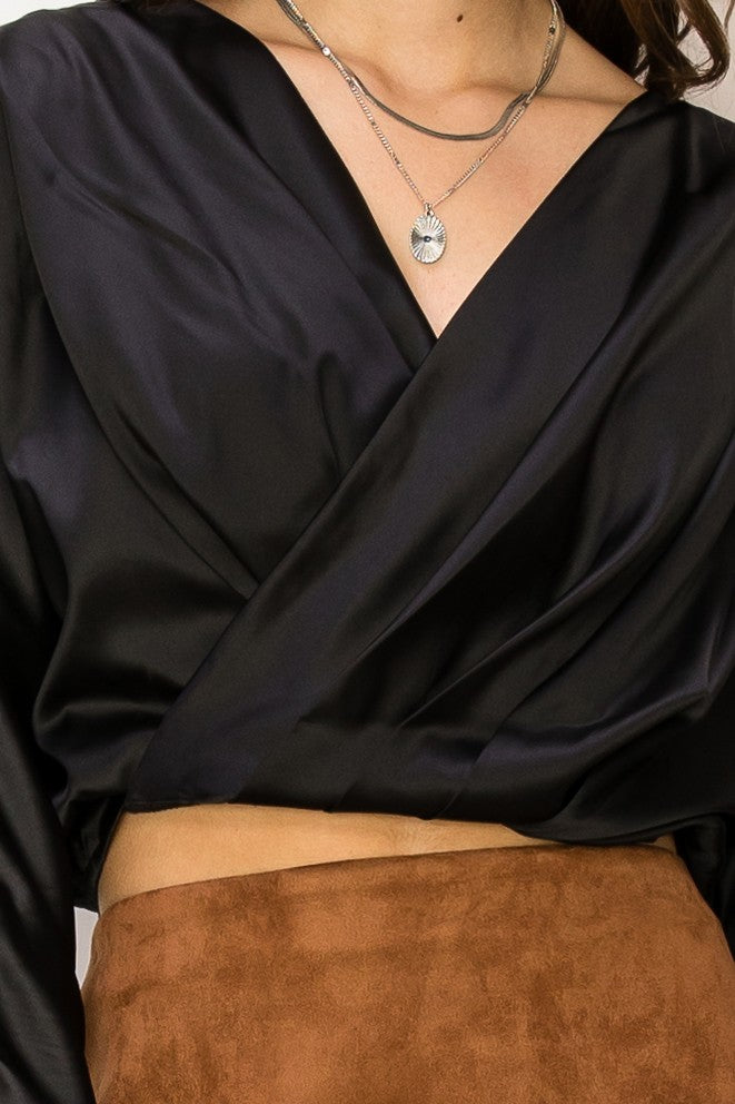 satin double v dolman crop top