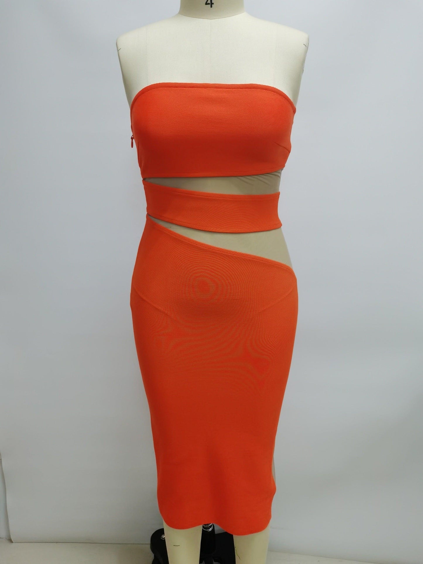 sheer panel strapless bandage dress