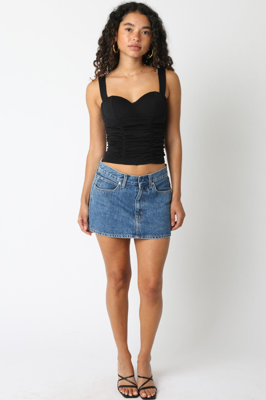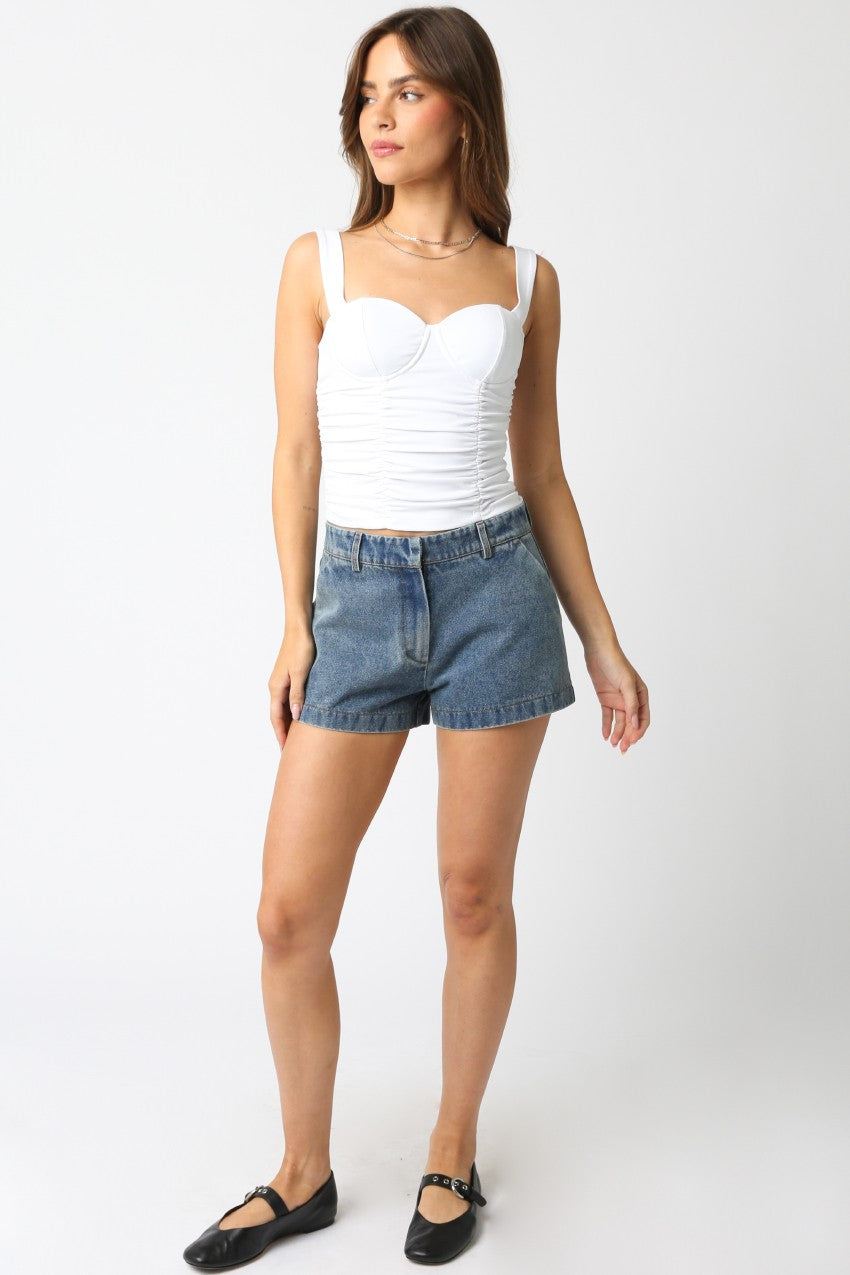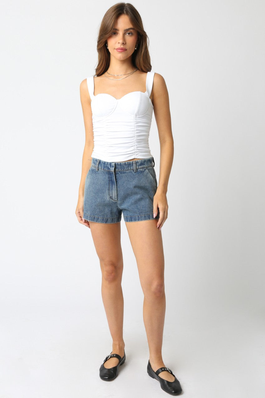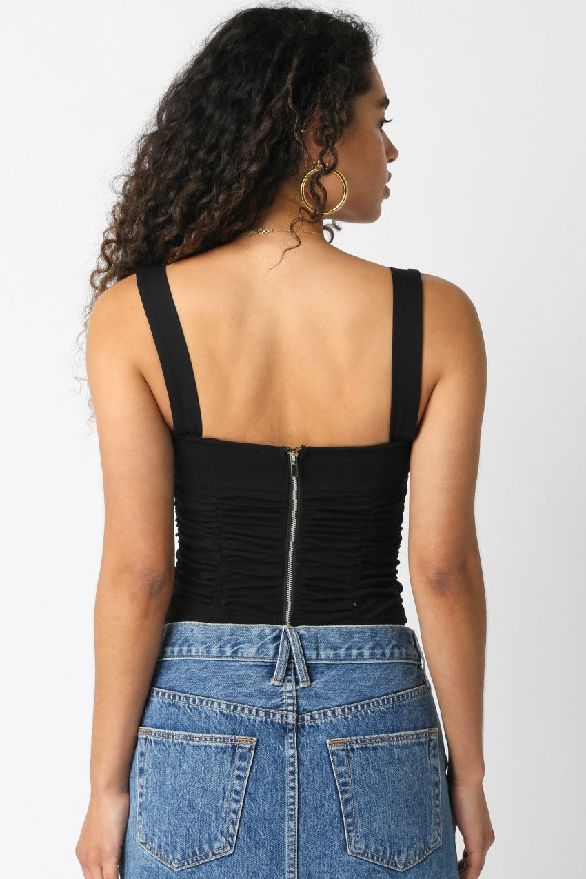 Our Violet Shirring Top features a sleeveless and a zipper closure. Knit
