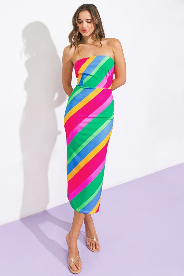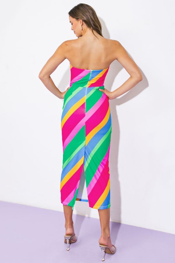 A printed ponti midi tube dress with back zipper closure and slit Details: Self : 95% Polyester 5% Spandex Size & Fit - Model is 5'8" And Wearing Size Small - Measurements Taken From Size Small - Approx. Length: 44"