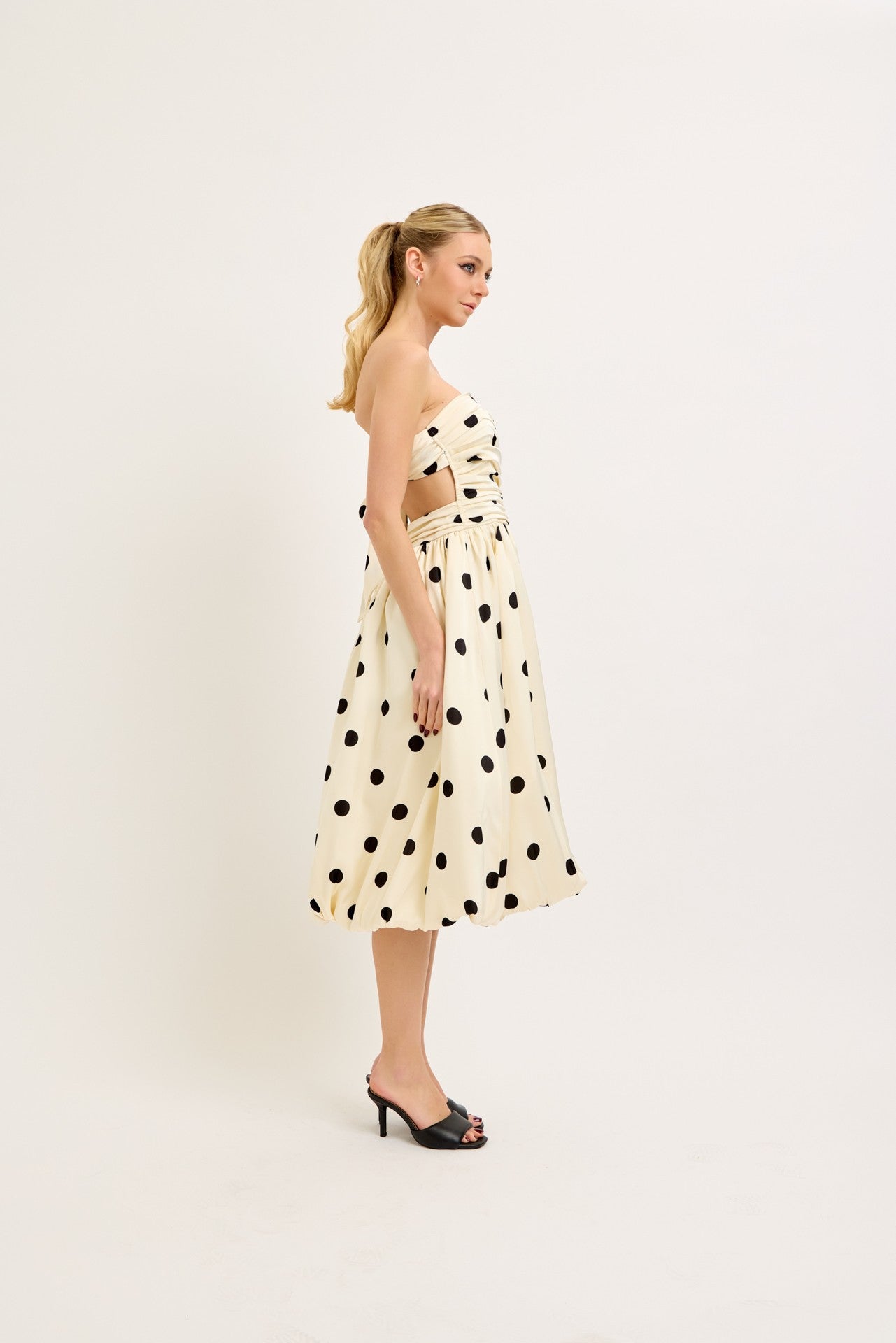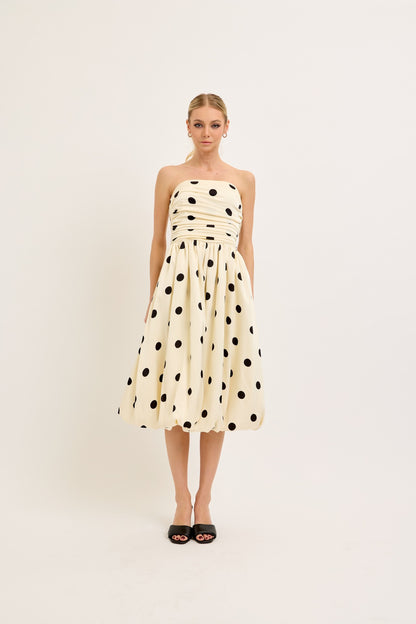 Polkadot Strapless Dress with Bubble Hem Bottom