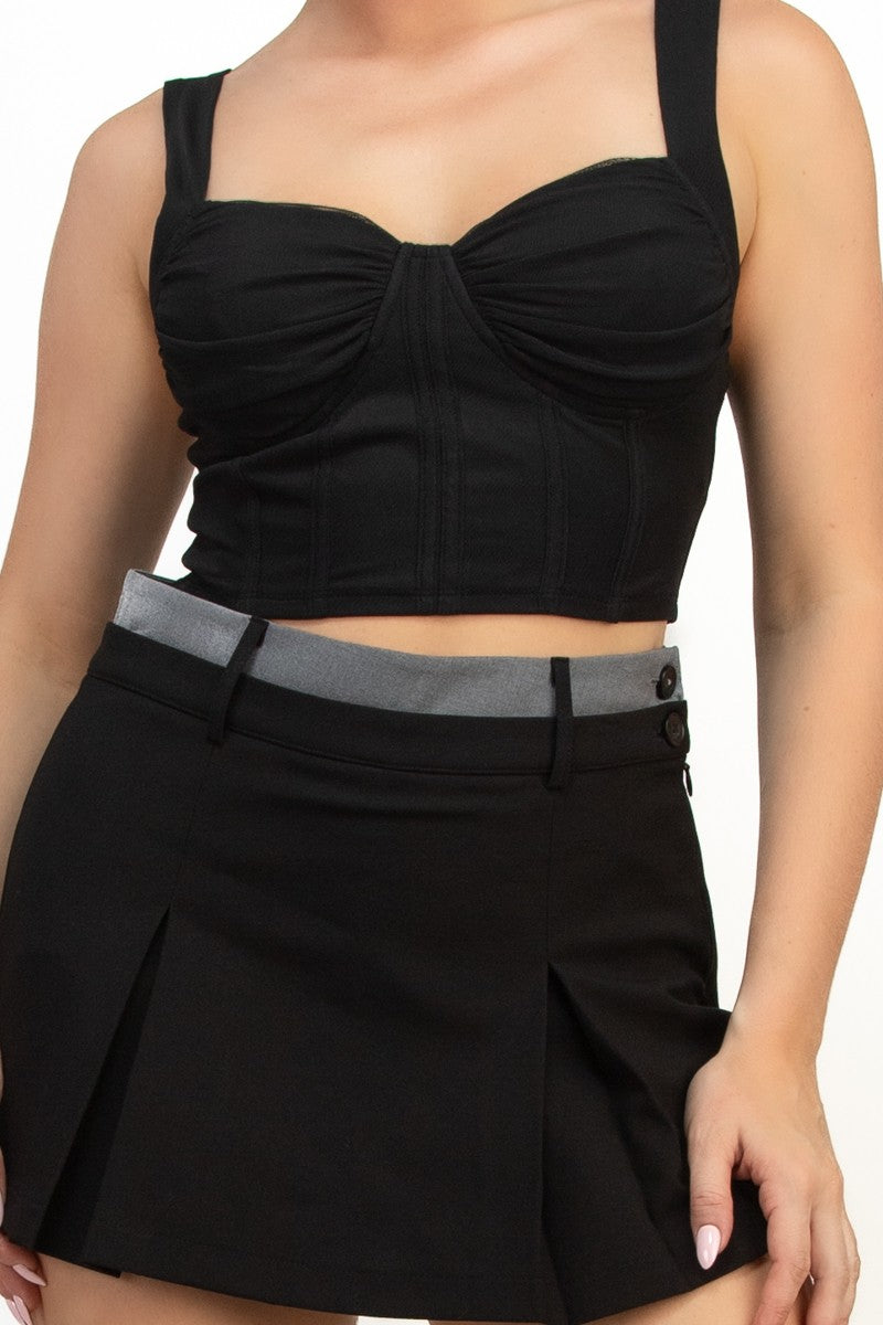 A knit on-trend top that exudes a smooth, lightweight feel with a hint of stretch for added comfort, featuring a sweetheart neckline, sleeveless cut, eyelet openings add a touch of airy softness, creating a gentle, breathable texture against the skin, and cropped length. Made in Vietnam