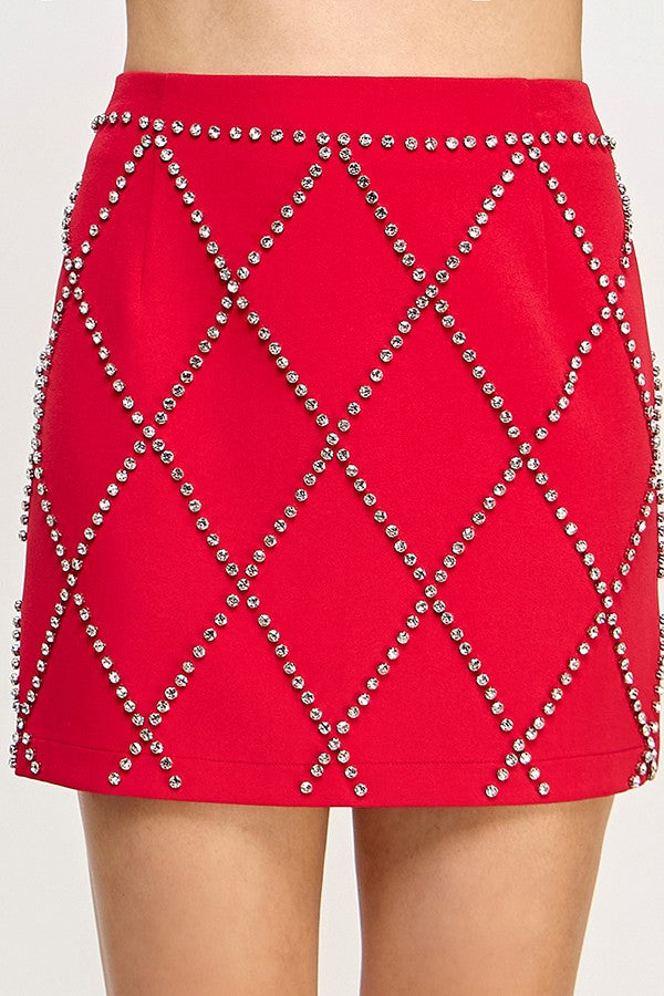 diamond pattern rhinestone mini skirt