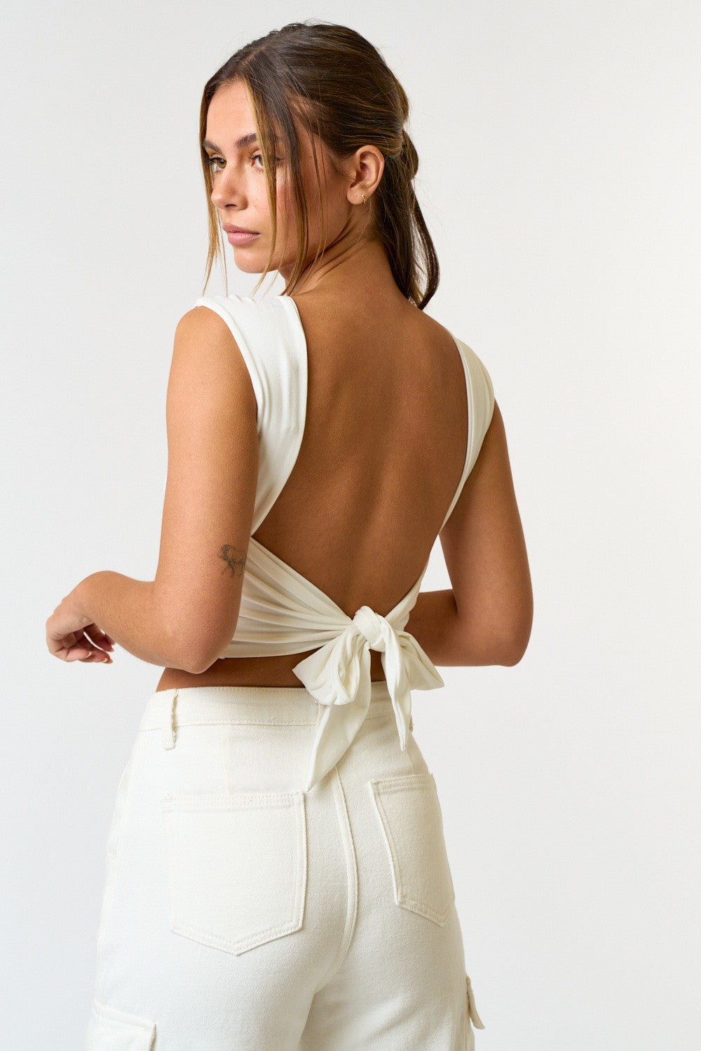 open tie back jersey sleeveless crop top