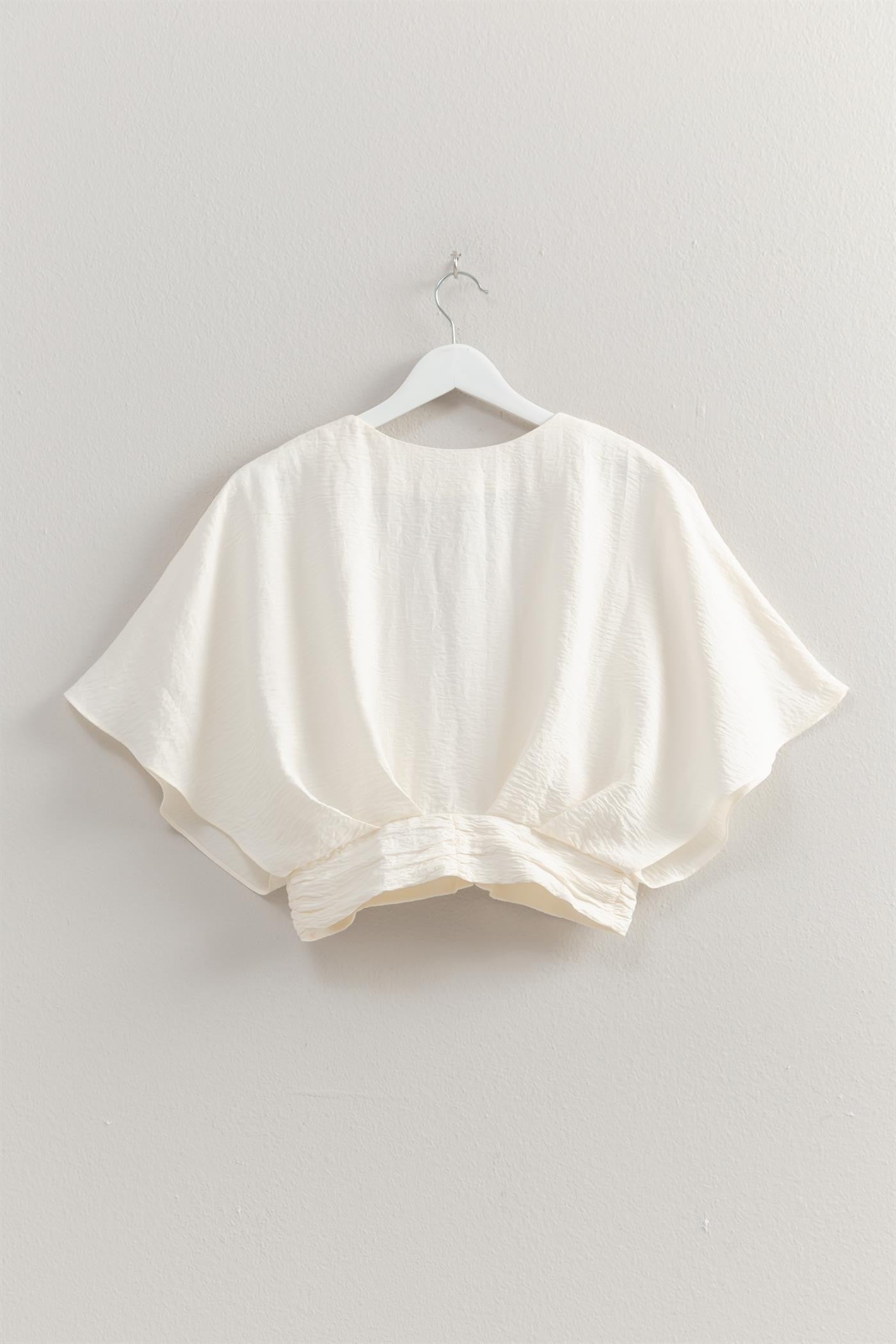 Its Easy To Create A Stunning Look With This Top. The Plunging Neckline Leads To Short Sleeves And A Kimono Style Silhouette. The Buttoned Waist Helps To Cinch In The Fit, Creating The Perfect Silhouette. Model Is 5' 6" Tall, 32" Chest, 24" Waist, 32" Hips And Wearing A Size Small