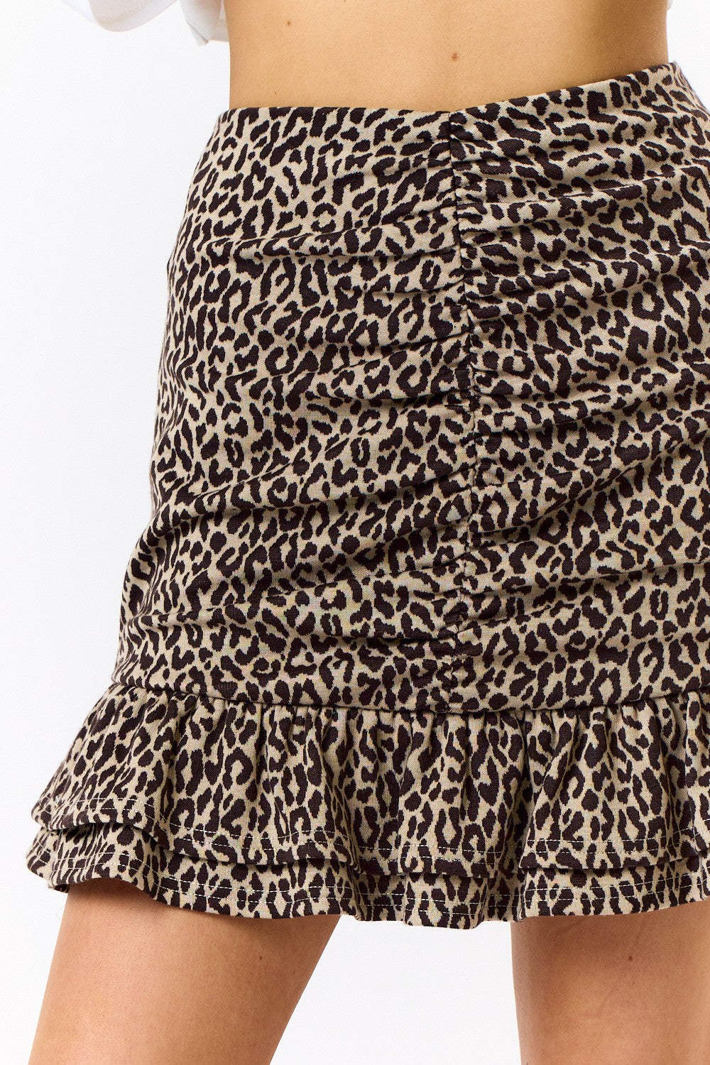 LEOPARD PRINT SHIRRING DETAIL RUFFLED MINI SKIRT