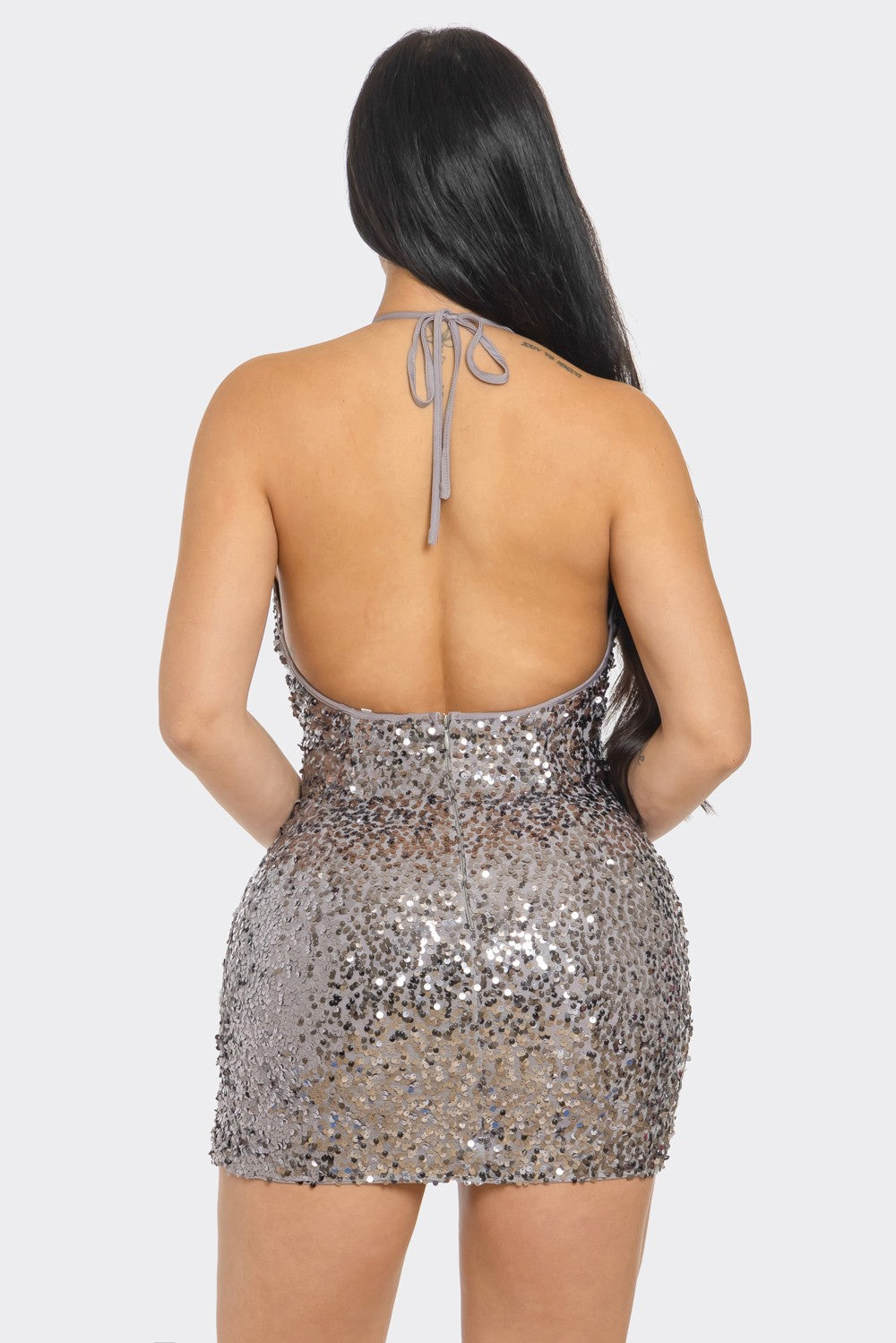 sequin deep v neck halter mini dress