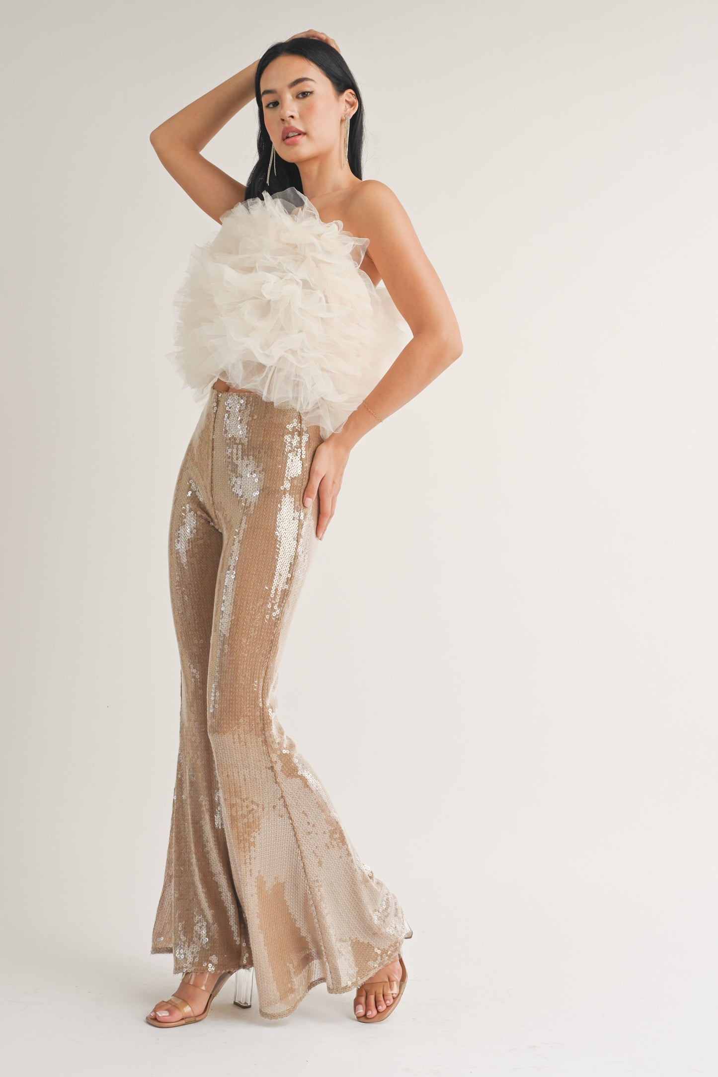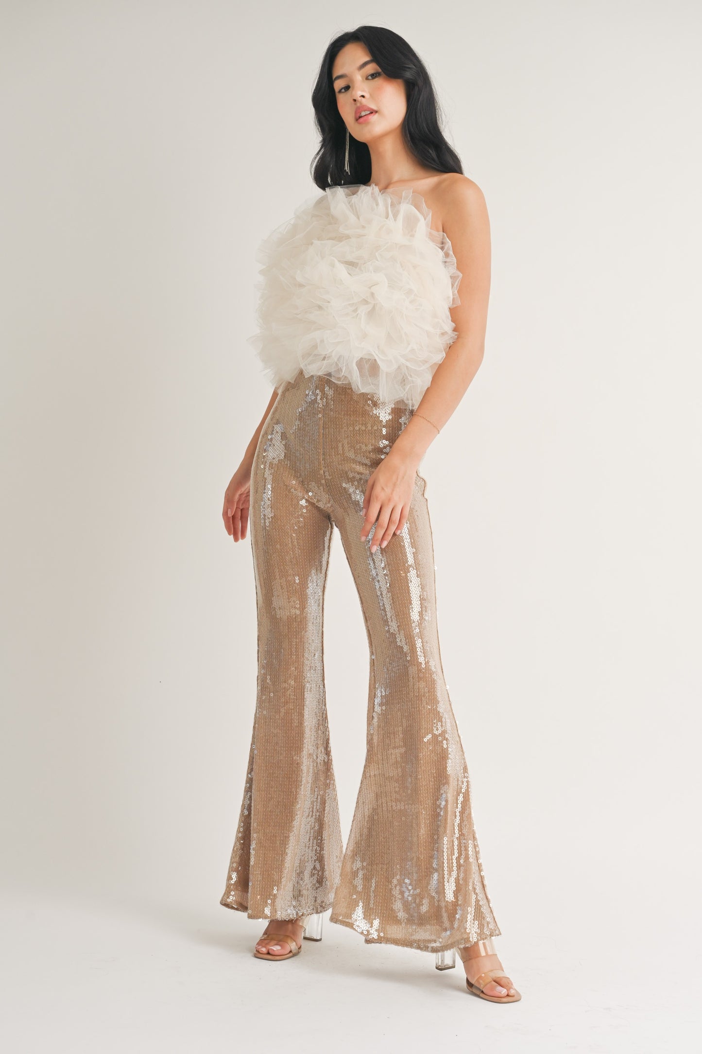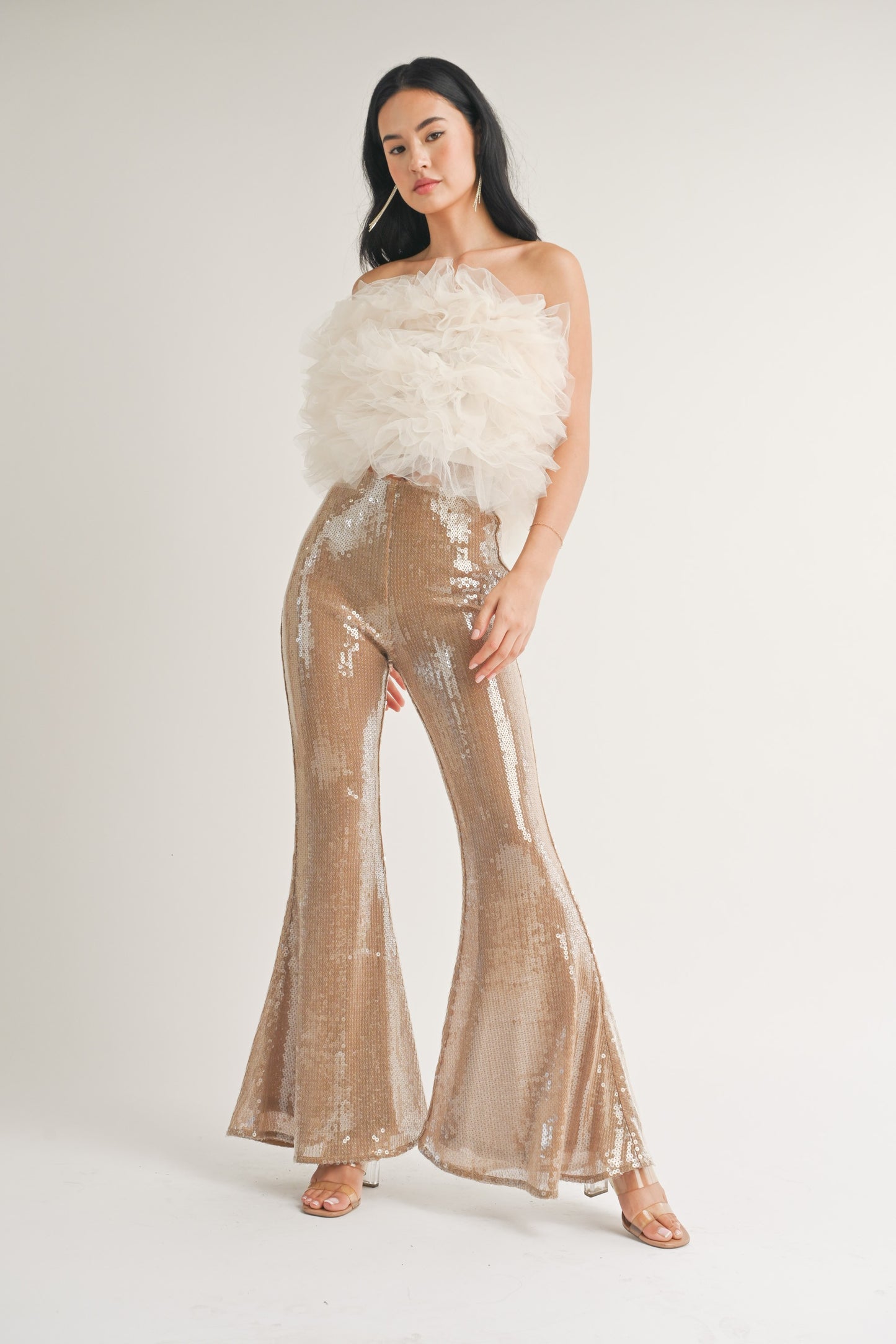 sequin flare leg pants