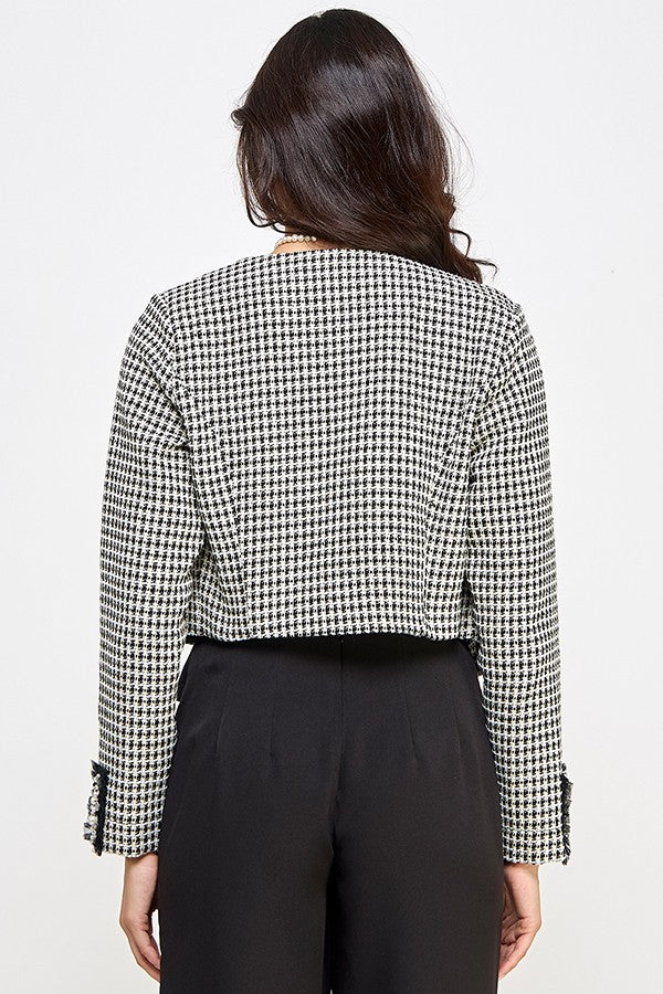 sequin trim crop tweed jacket
