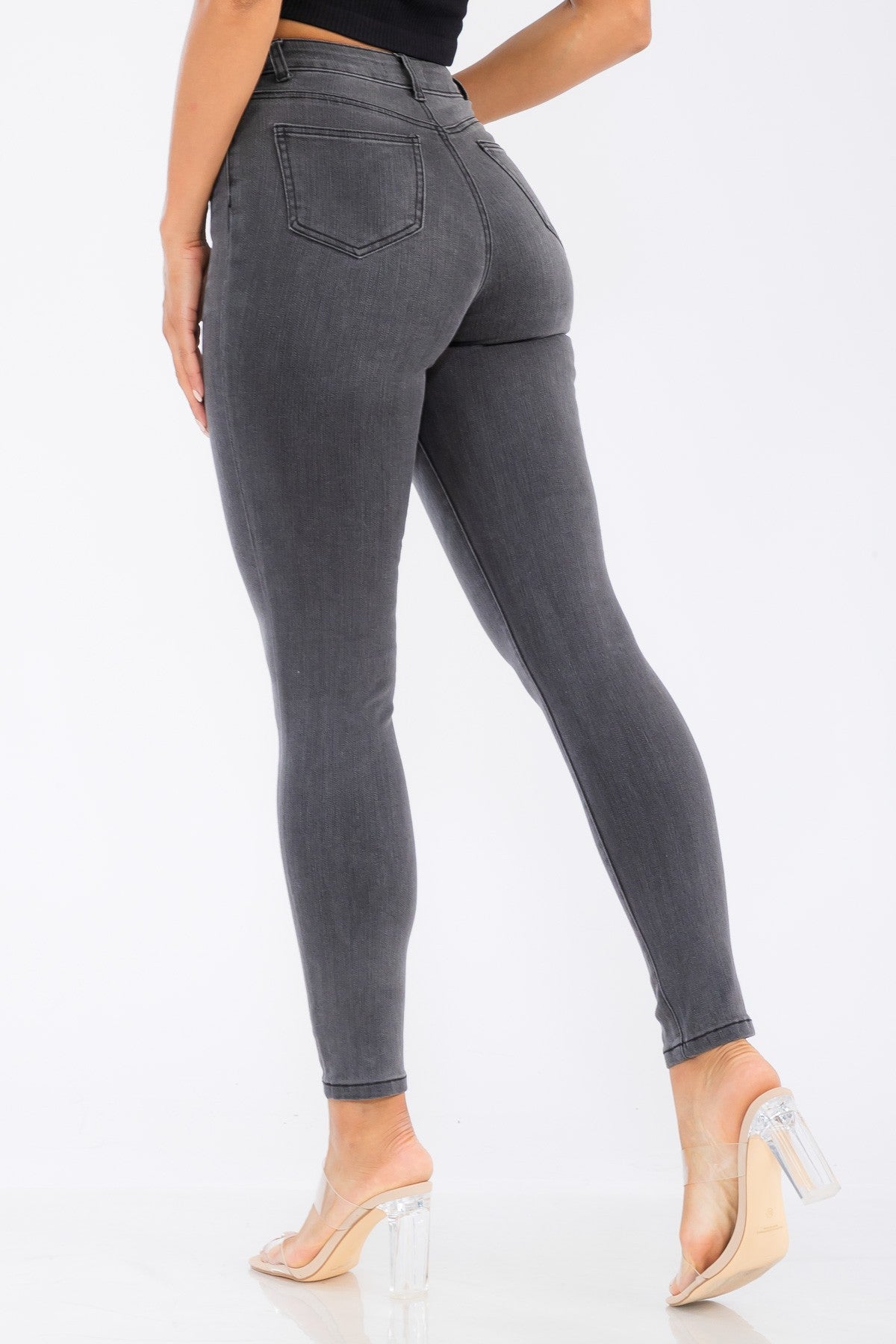 HIGH WAISTED STRETCH DARK GRAY DENIM ANKLE LENGTH, INSEAM 29"