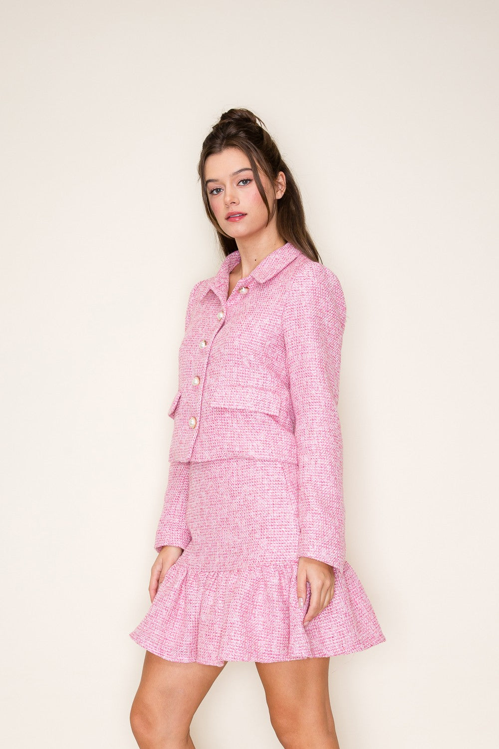 The Tweed Ruffle Hem Mini Skirt from B.right is a must-have for anyone looking to add a touch of elegance with a hint of playfulness to their clothing collection.