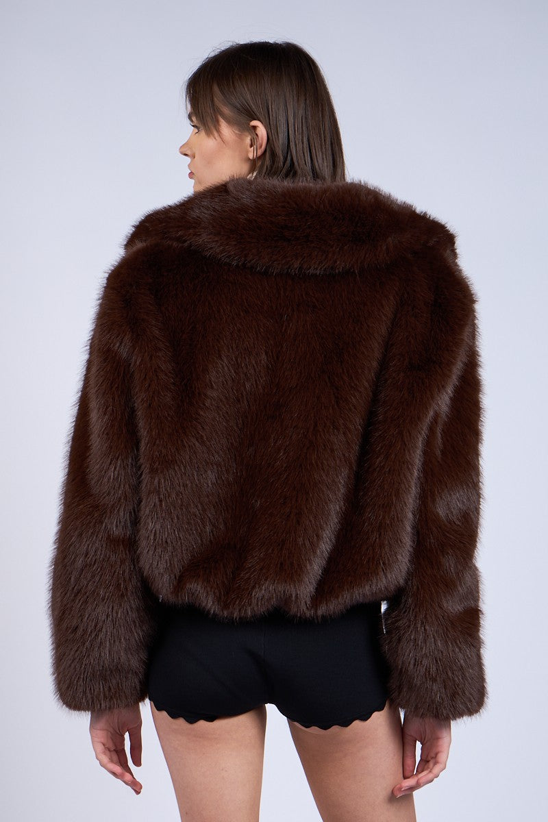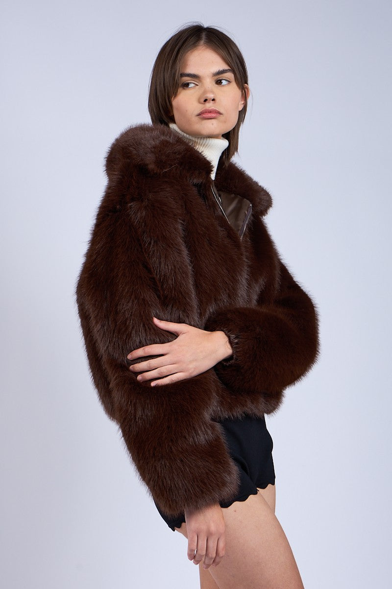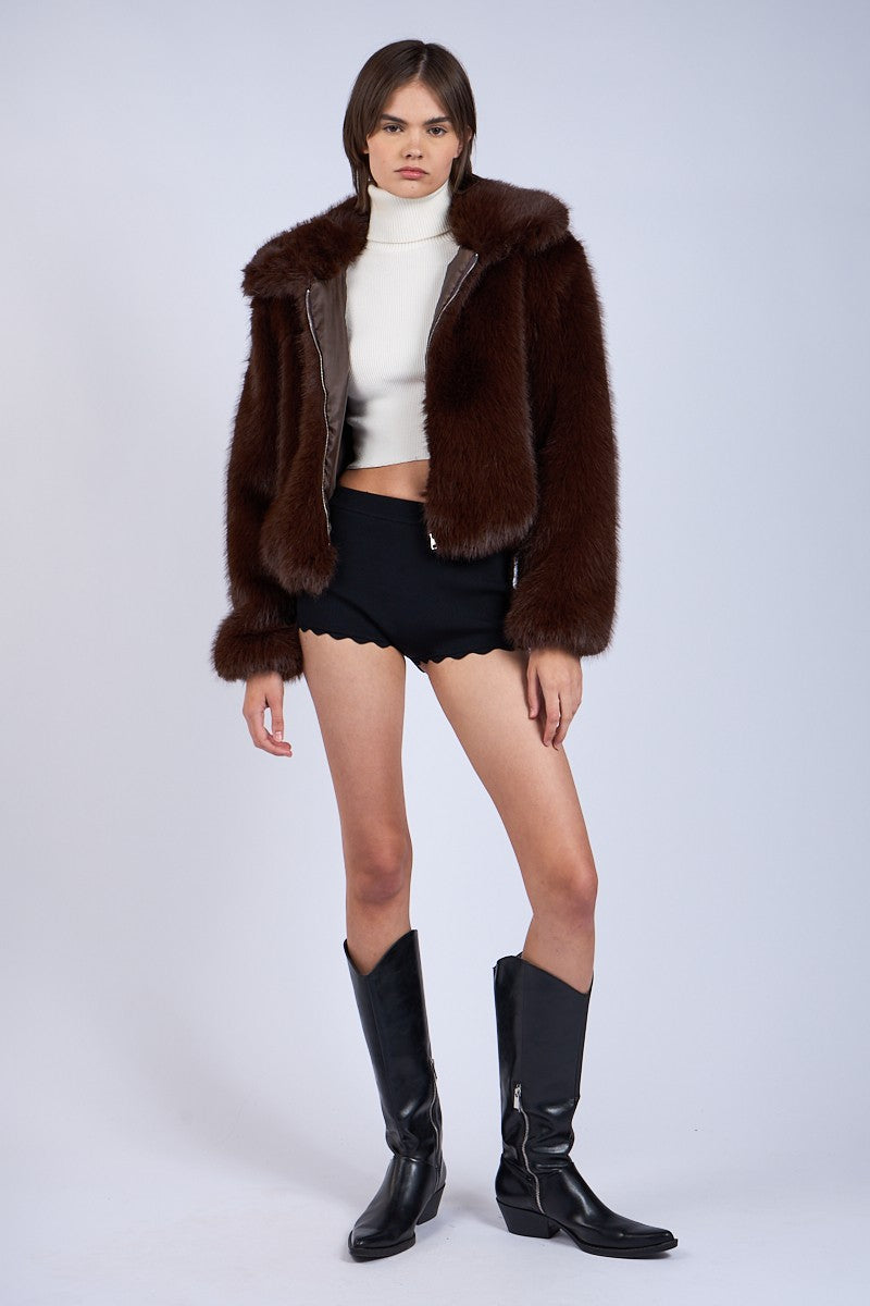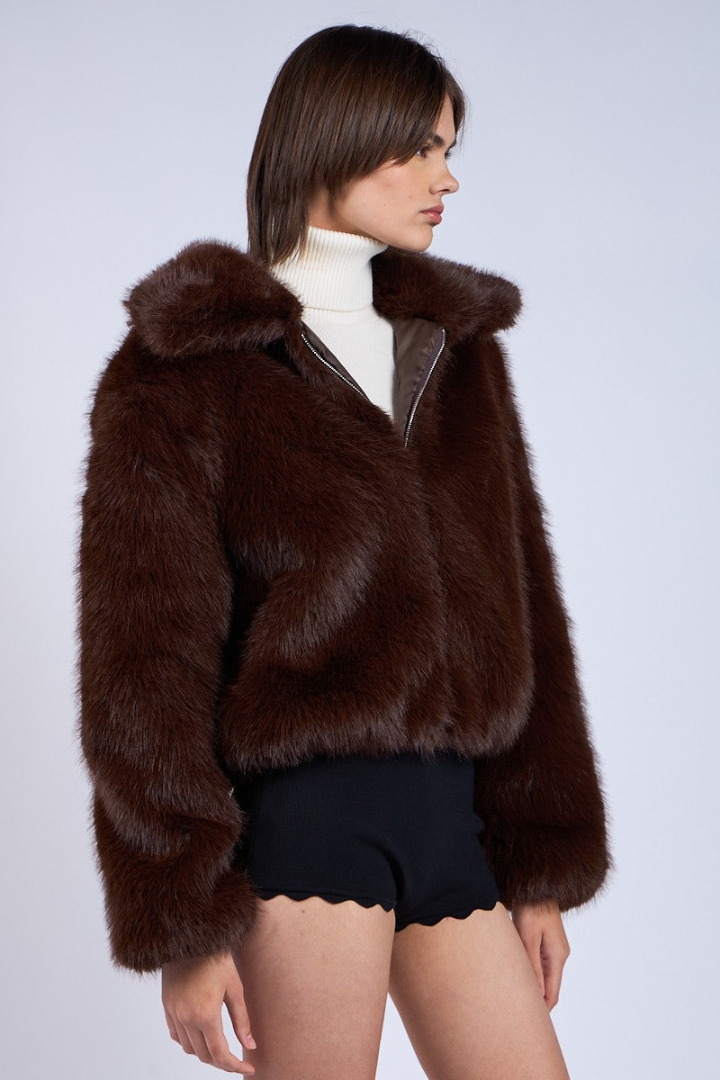 Solid Color Collared Neck Long Sleeve Front Zipper Down Casual Faux Fur Jacket * Model Info: Height: 5_8'' Bust: 34B Waist: 24 Hips: 34
